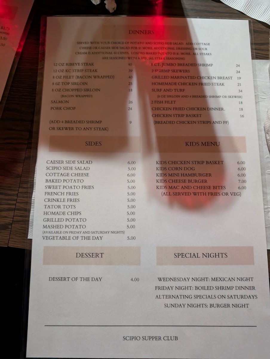 The menu at Scipio Supper Club offers a straightforward and hearty selection that fits well with its relaxed, small-town setting. You’ll find classic American dishes that feel familiar and satisfying, perfect for a casual lunch or a laid-back dinner after a day spent outdoors or exploring the nearby Prairie Spirit Trail.
